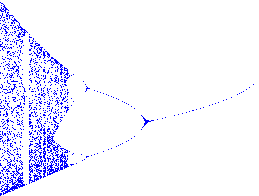 Fig 1.3. The Mandelbrot SetFig 1.4. Bifurcation diagram for \(f(x) = x^2 + c\) with