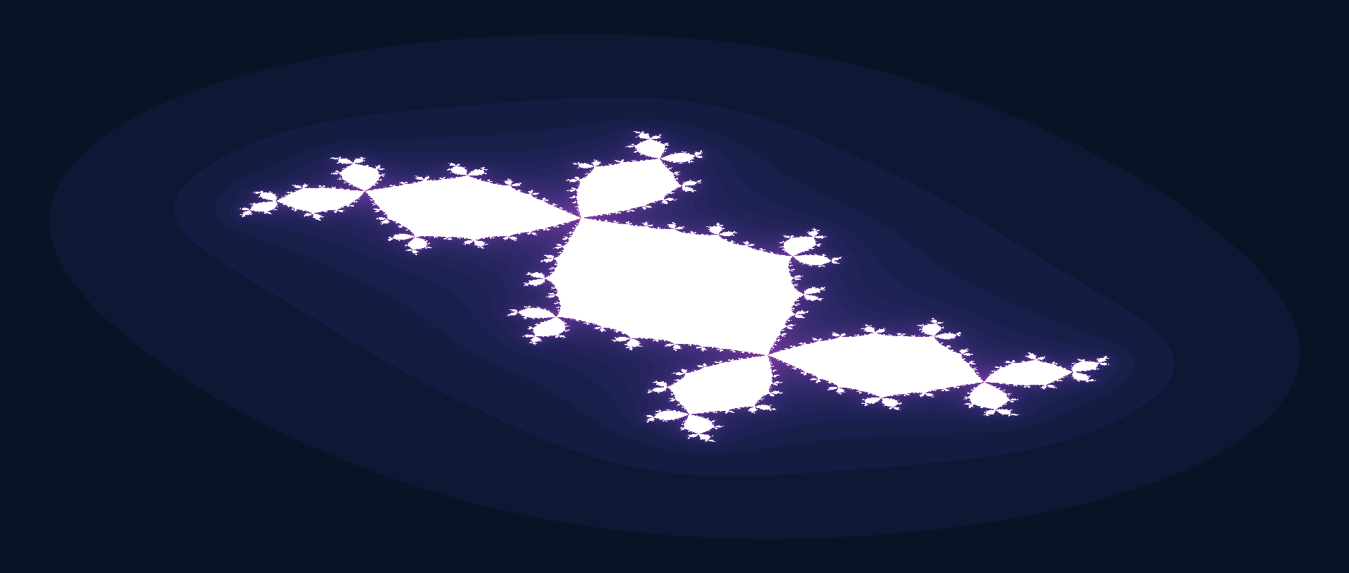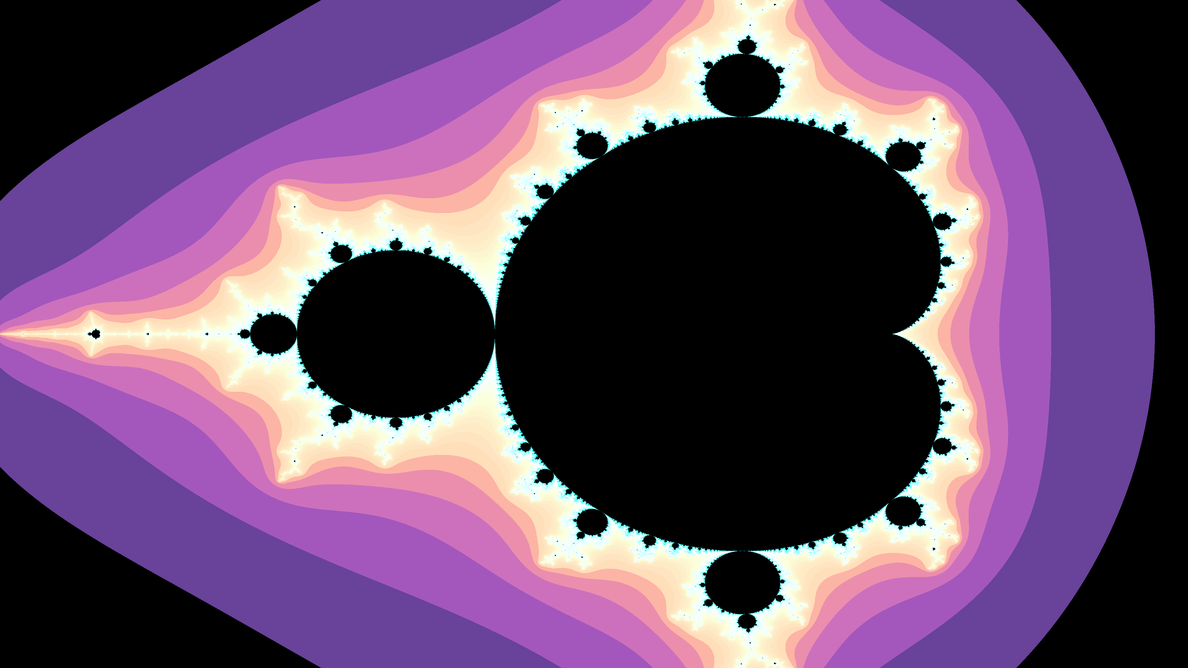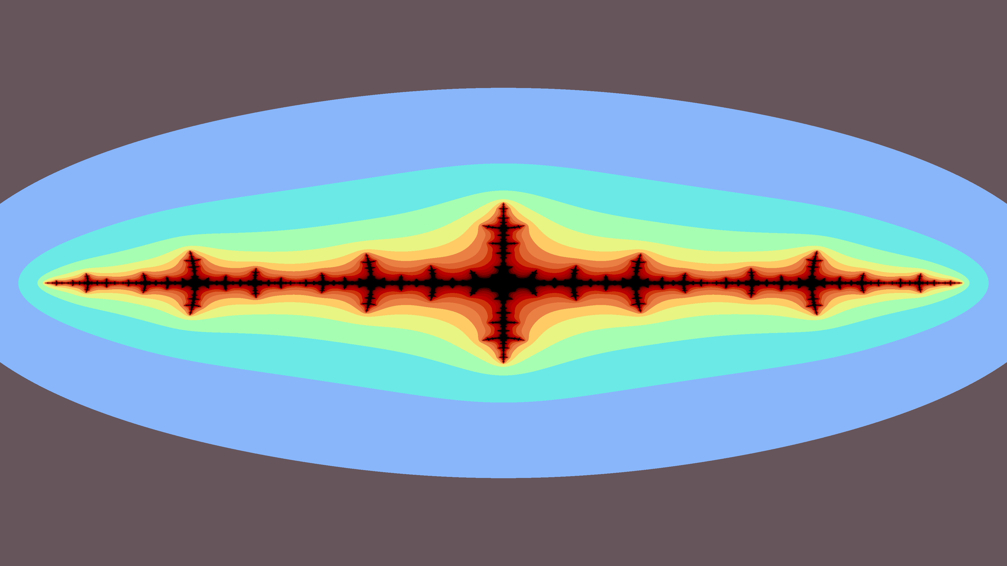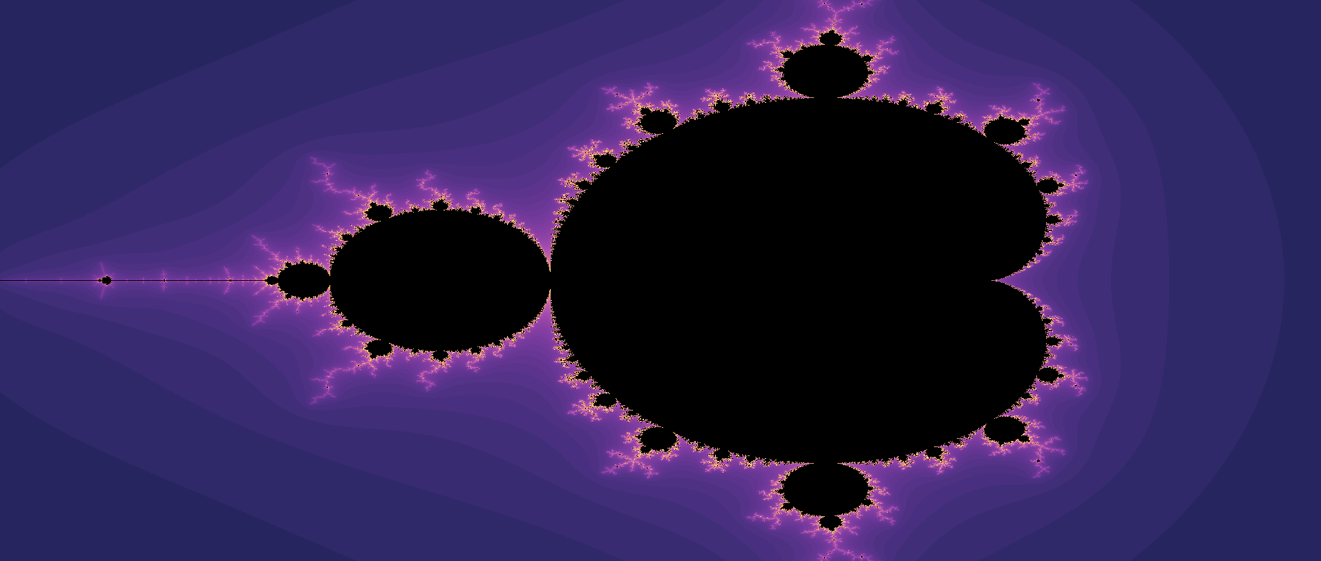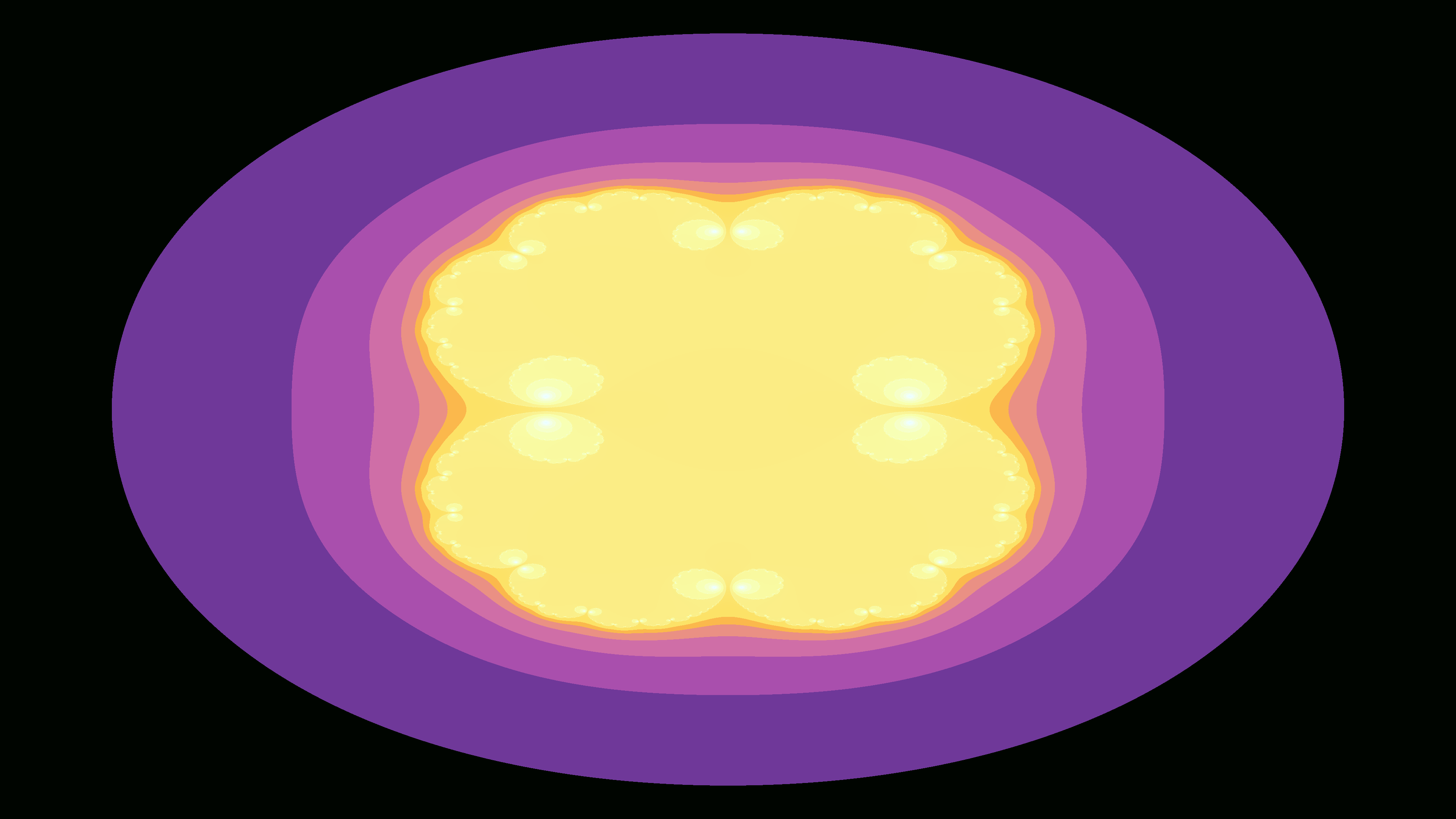 Note how the darker colors on the left are not used because the escape iteration count starts at 3Fig 2.8. Douady’s rabbit created using 50 iterationsFig 2.9. Inferno color scheme utilization (dashed box) for Douady’s rabbit with 50 iterationsFig 2.10. Douady’s rabbit created using 200 iterationsFig 2.11. Douady’s rabbit created using 800 iterationsFig 2.12. Douady’s rabbit created using 800 iterations with histogram coloringFig 2.13. A Siegel diskFig 2.14. A dragonFig 2.15. The Julia set of \(sin(z)\)Fig 2.17. The Mandelbrot Set